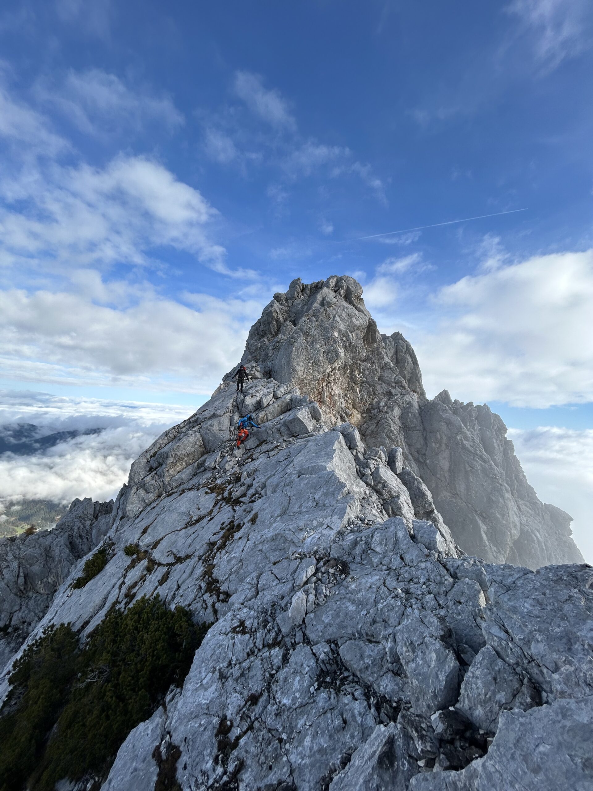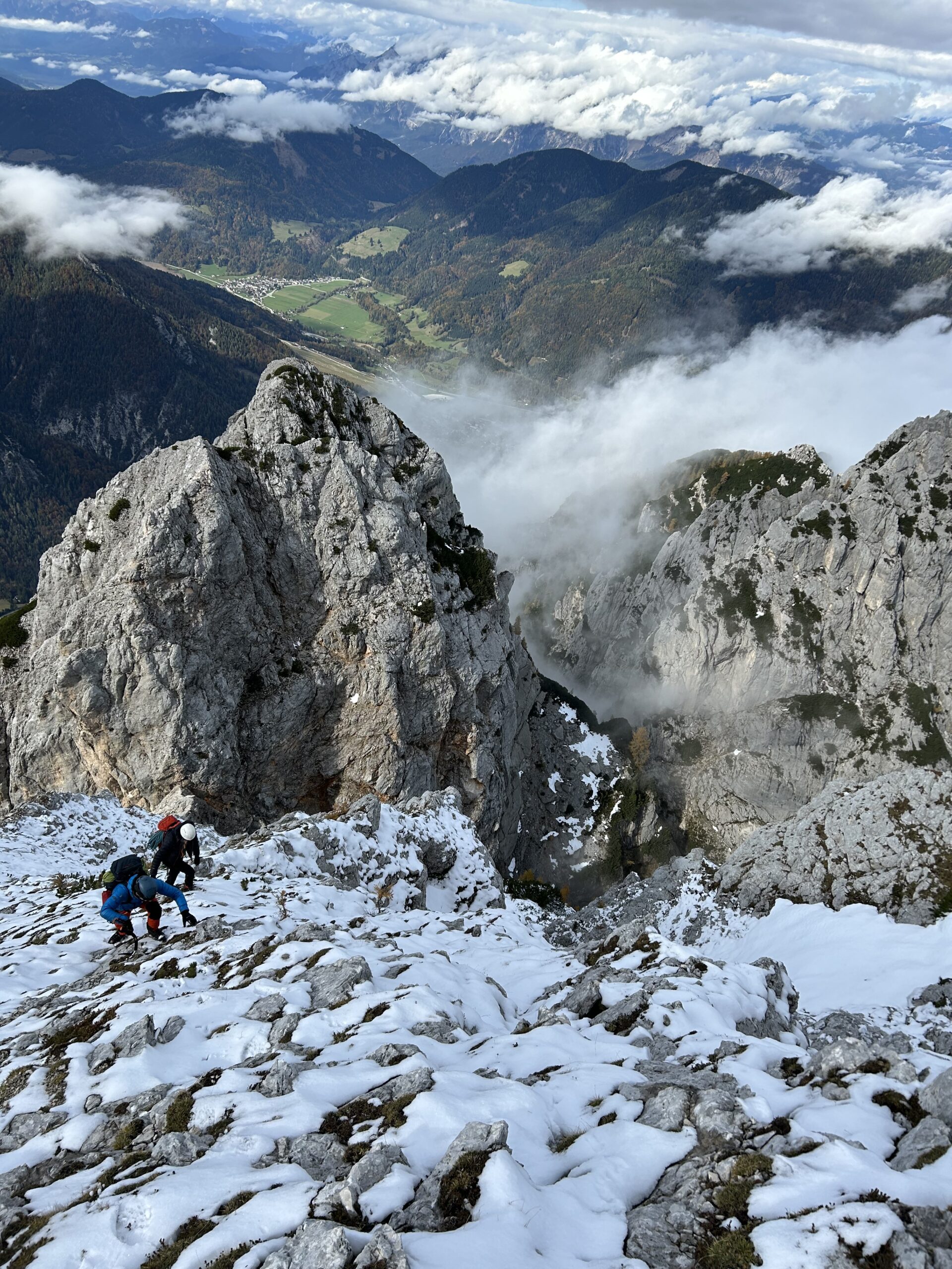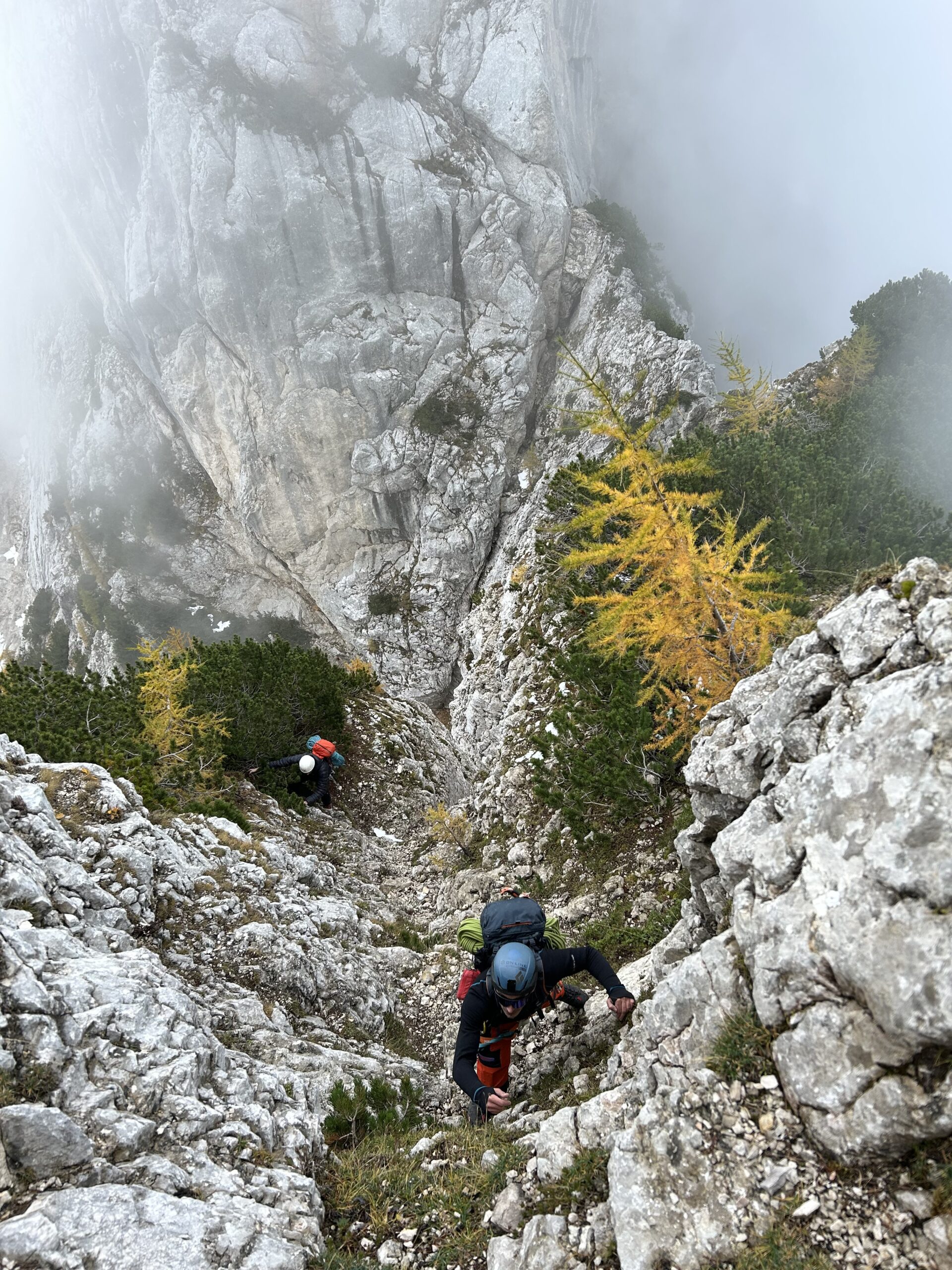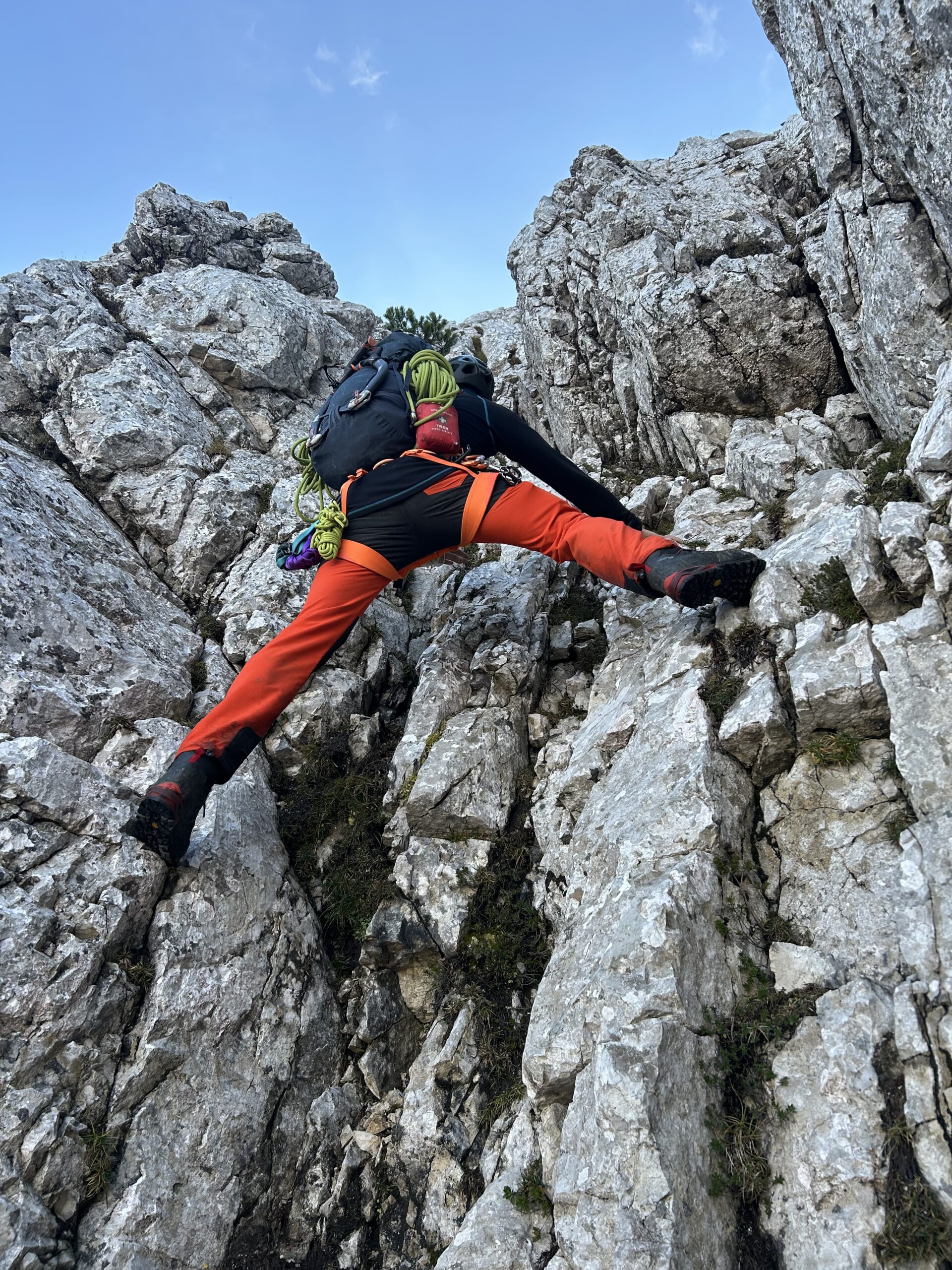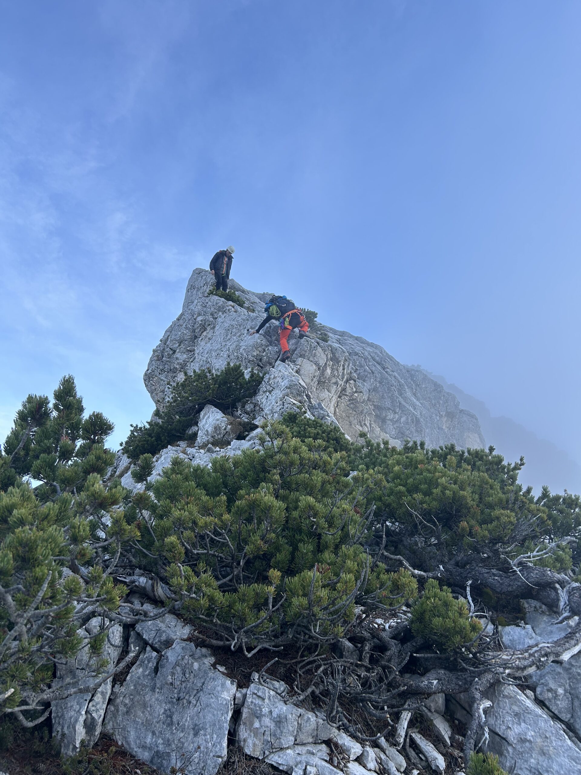 Poplezavanje je lepo, ponekod vseeno malce naloženo. Plezalne robe nismo rabili in je bila bolj za kondicijo. Abzajl piste pa so tudi dobro navrtane in bi za spuste zadostovala že ena polovička. Vreme pa kombinacija megle, sonca, vetra in mraza, vsega po malo.