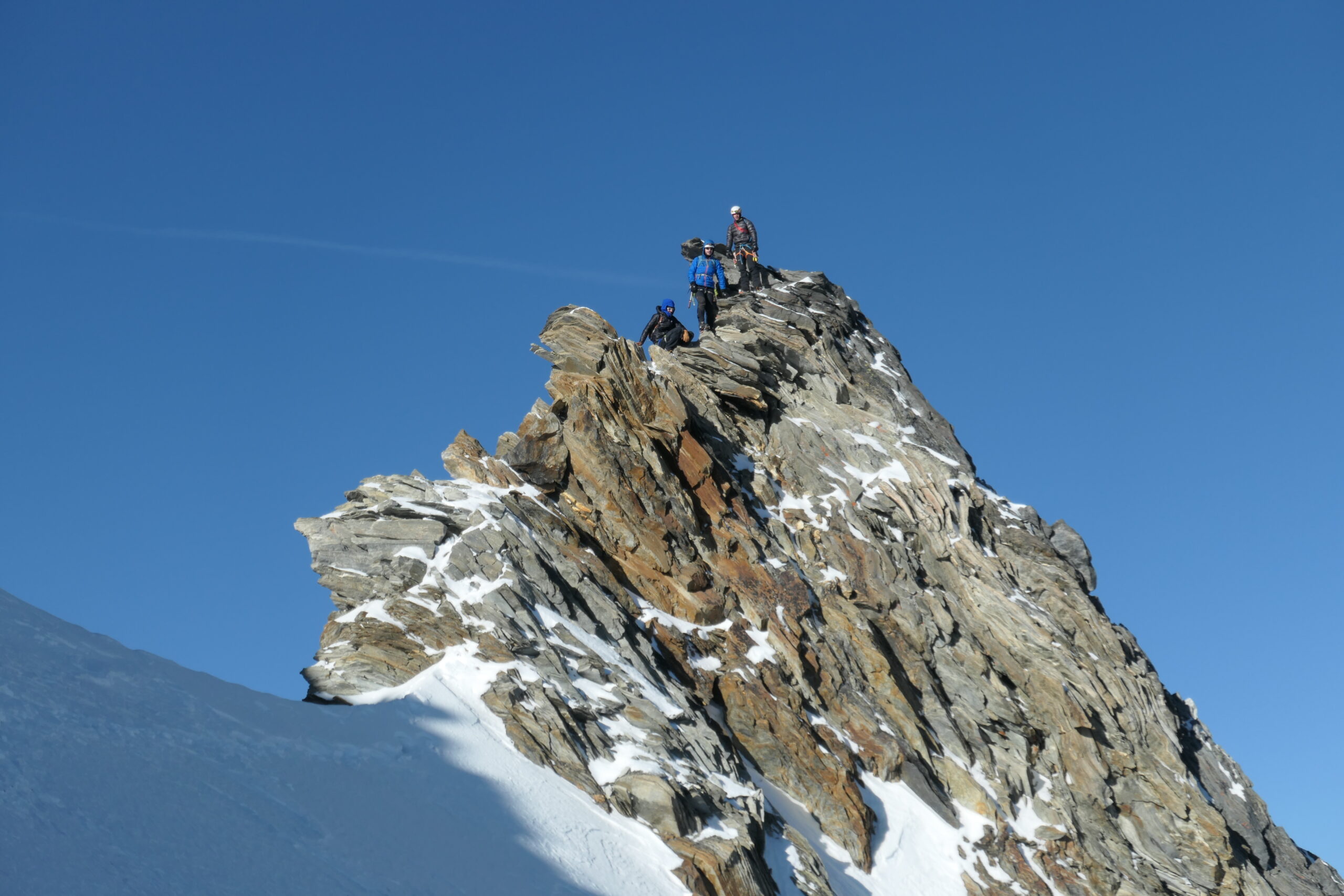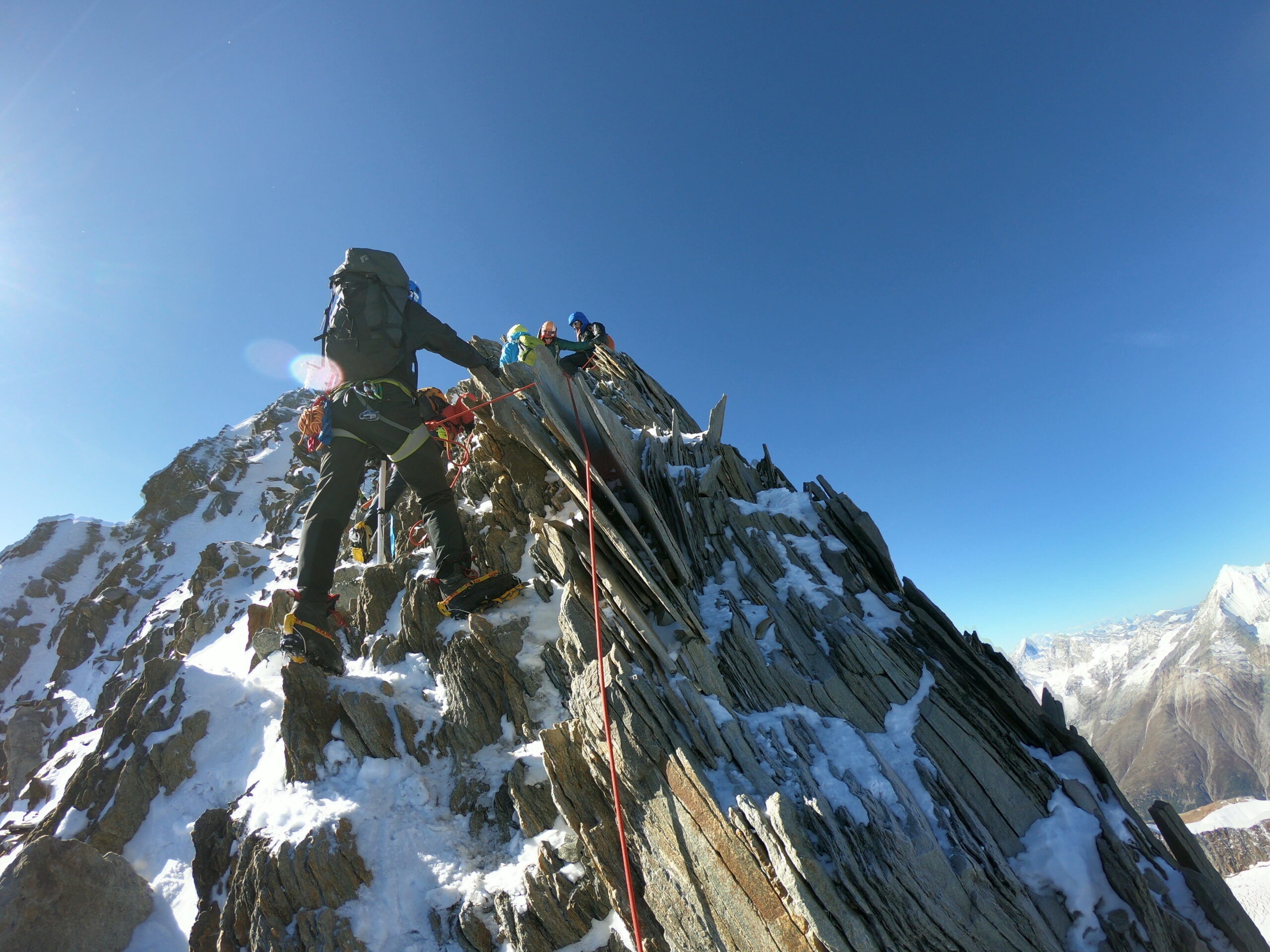 Zadnji vikend v septembru se je kar 30! Rašičanov udeležilo skupne ture na Nadelhorn nad Saas Fee-jem v Švici. Tokrat smo se zadeve lotili ultra luksuzno in potovali s fensi busom, mimogrede pa si tudi prislužili drugo nagrado za najbolj spalni bus vseh časov (takoj za profi rokometašicami – naj jim bo). Tako smo v Saas Fee (1800 m) prispeli spočiti in si lahko zadali 500-kilske ruzake ter se lotili vzpona do koče Mischabelhütte (3340 m). Ta najbolj zagreti so šli vse peš, večina pa si je kako uro muk prišparala z gondolskim taksijem. Popoldne je sledilo martinčkanje, kuhanje, fotkanje (razlgedov in sebe) in pa seveda vaje iz ledeniške tehnike.