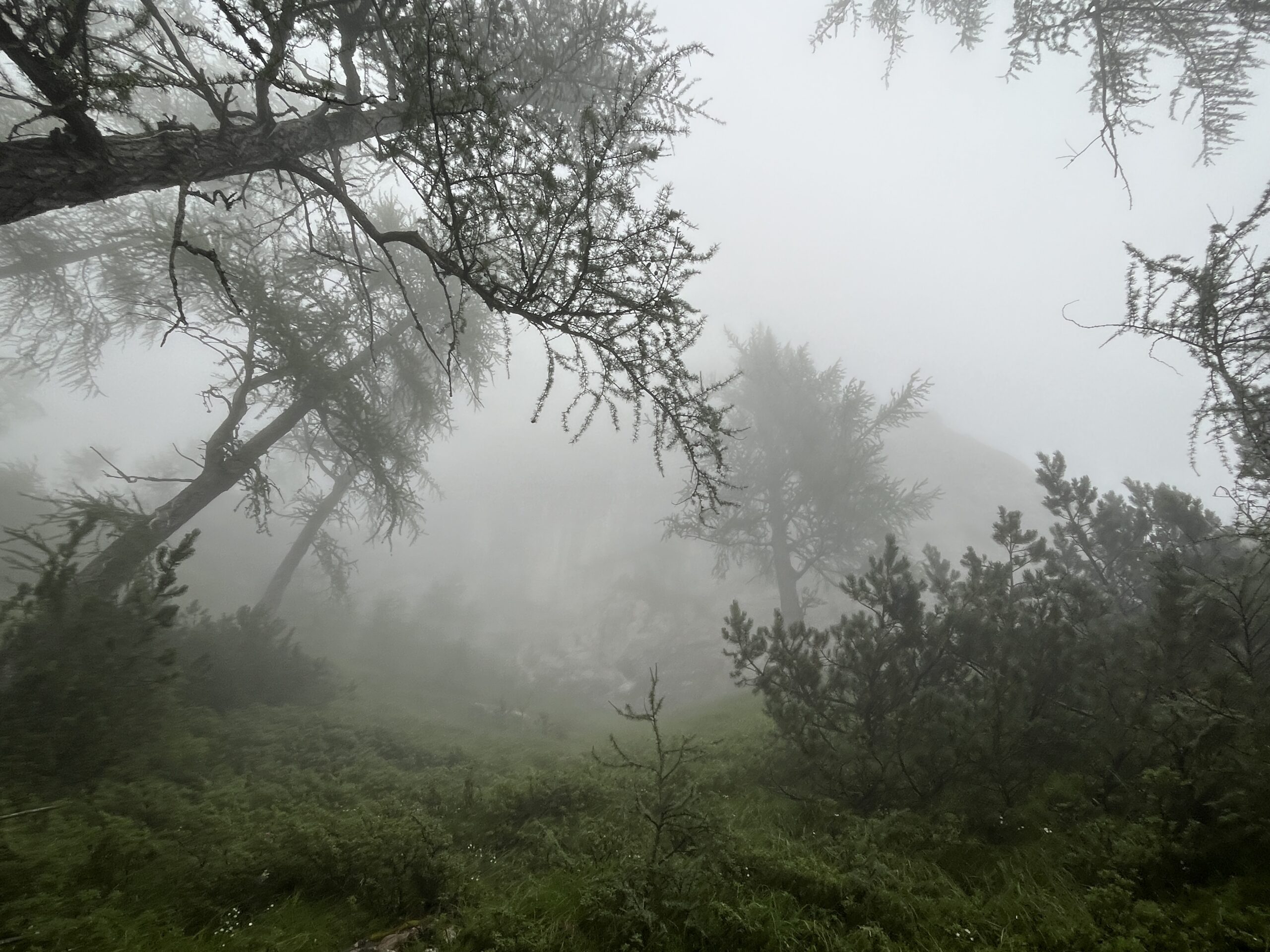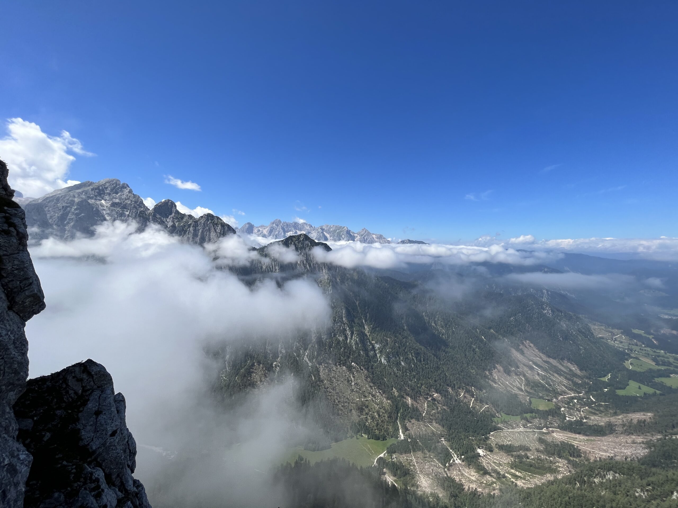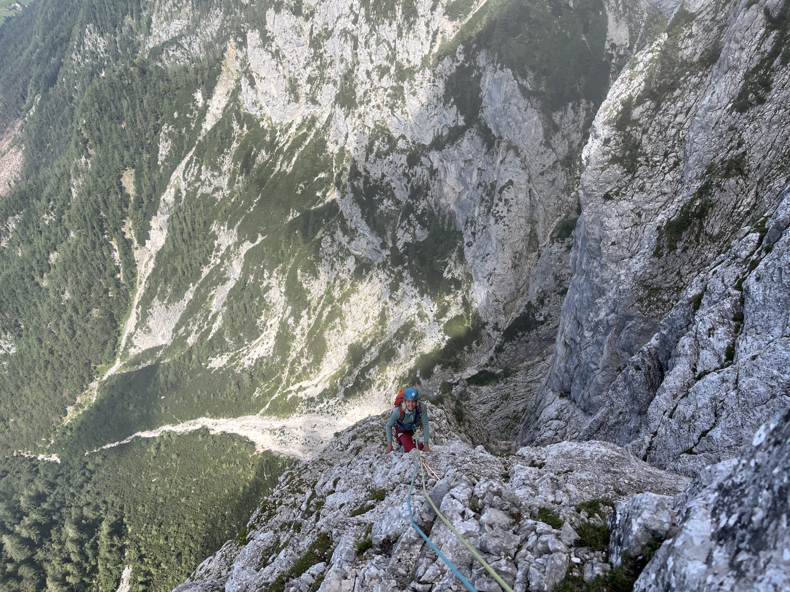 Z Niko sva se v torek zgodaj zjutraj prebudili v totalno megleno Krmo. Z namenom, da splezave Sekločevo smer V+, IV+, 250 m (cela stena 400 m). Glede na to, da v severni steni Debele peči ni še nobena od naju plezala in glede na to, da je bila megla do tal iz katere je zapovrh še rosilo, ni izgledalo nič kaj obetavno. Pa vendar. Vseeno sva se odpravili pod steno. Ko sva se po lovski poti dvigali skozi gozd, so tekli pogovori o tem, ali bova v tej megli sploh našli vstop v smer. Kajti ta se začne kar visoko in te do vstopa čaka najprej 100 m poplezavanja po lažjih prehodih do kotanje. Tu je največji orientir velika zajeda, ki pa je seveda nisva videli. Nekako poizkusive slediti opisu ter pribljižno uhojenem terenu in se po nekaj spraševanjih vmes, ali gre to tam kjer treba, kar naenkrat znajdeve pod ogromno zajedo. Z mojo dioptrijo sem morala še 2 x pogledati skozi gosto meglo ali je to res to. Obe veseli in mokri do kolen in še čez, se podave v vlažen prvi cug v upanju, da se megla razkadi in skala malo bolj posuši. No, megla celo Sekločevo ni popustila, skala pa je v težjih delih postala popolnoma suha. Smer je zelo sledljiva, plezarija pa super in v zaporednih peticah kar konkretna. Sekločeva smer se nato priključi smeri Jesih-Potočnik, kjer zanimivost raztežajev sploh še ne popusti. Ne opisujejo zastonj v poročilih, da do vrha stene preplezaš še najlepše raztežaje te smeri. Zaključna dva raztežaja še kar dobro poplezaš. Najlepša stvar zadnjih raztežajev pa je bila ta, da se je megla razkadila in sva bili do konca deležni samo še sončka. Nato pa še dolg sestop po grapi, čez nekaj skalnih skokov po lovski poti, kjer se nama je na vsake toliko časa sled zabrisala in sva imeli nekaj orientacijskih ugank.